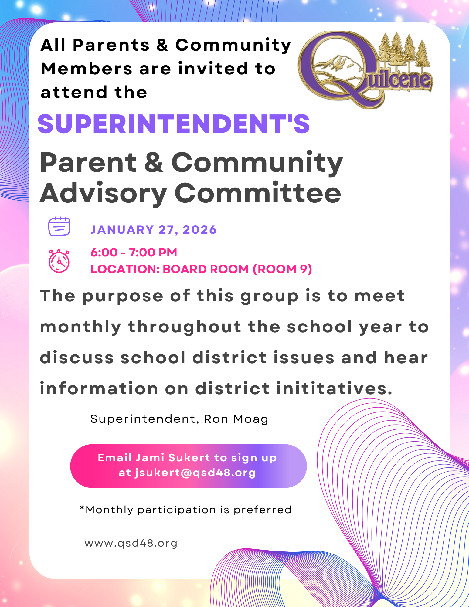 The Quilcene School District, in active partnership with the community, shall provide a quality education to all students in the community, through a program of learning emphasizing basic education while challenging each student to build on natural abilities and develop skills to become life-long learners and productive, responsible citizens.